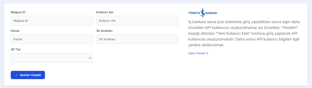 Banka Sayfası açıldığı zaman gerekli bilgileri yazıp “Ayarları Kaydet” butonuna basıyoruz.
