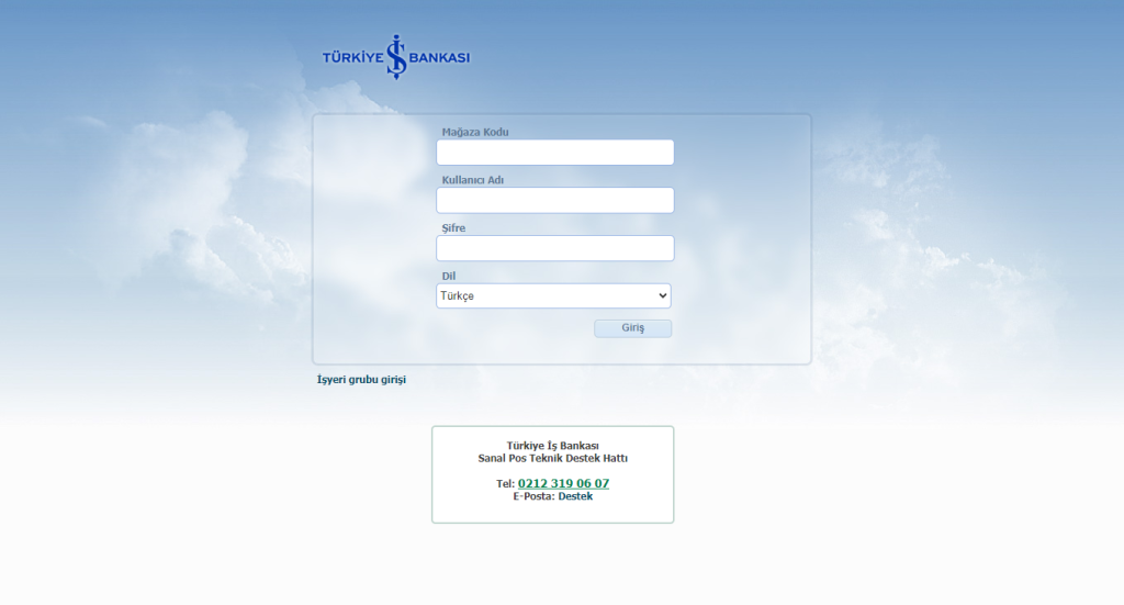 Öncelikle diğer bankalarda da olduğu gibi Sanal POS almak istediğiniz bankaya başvuru yapmanız gerekmektedir. Başvurunuz tamamlandıktan ve banka tarafından gerekli bilgileri aldıktan sonra İş Bankası Sanal POS Sayfasına giriş yapmalısınız.